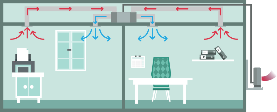 They are placed centrally in the ceiling and also have the advantage of providing an even four-way airflow around the classroom.